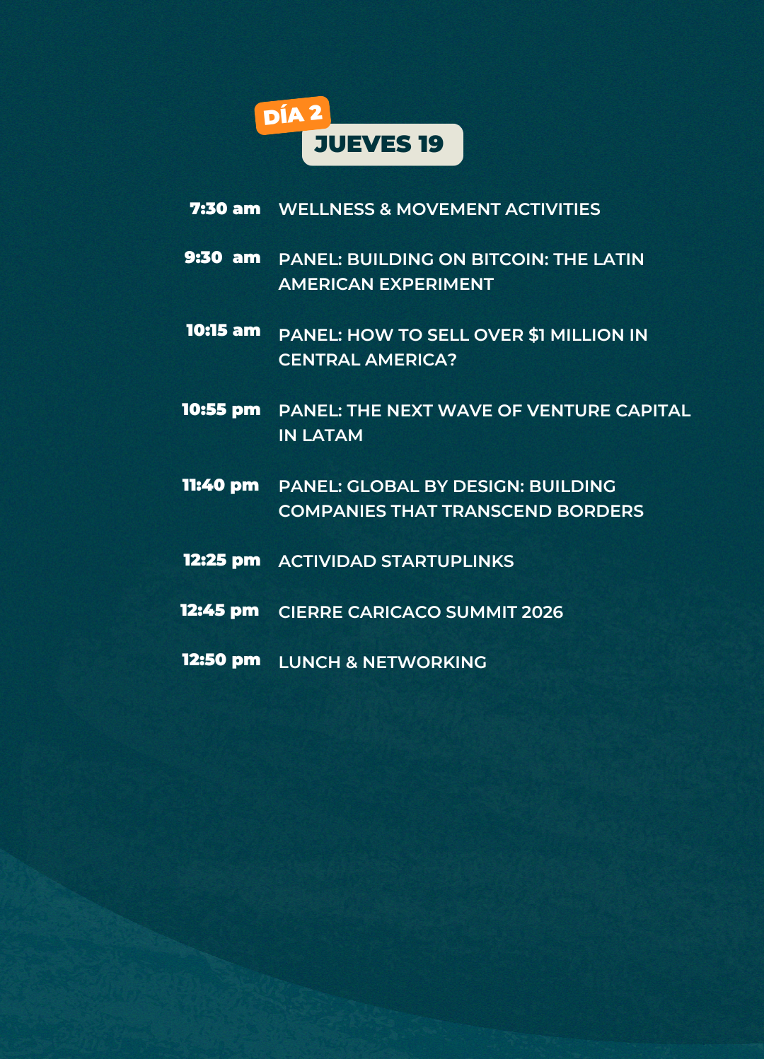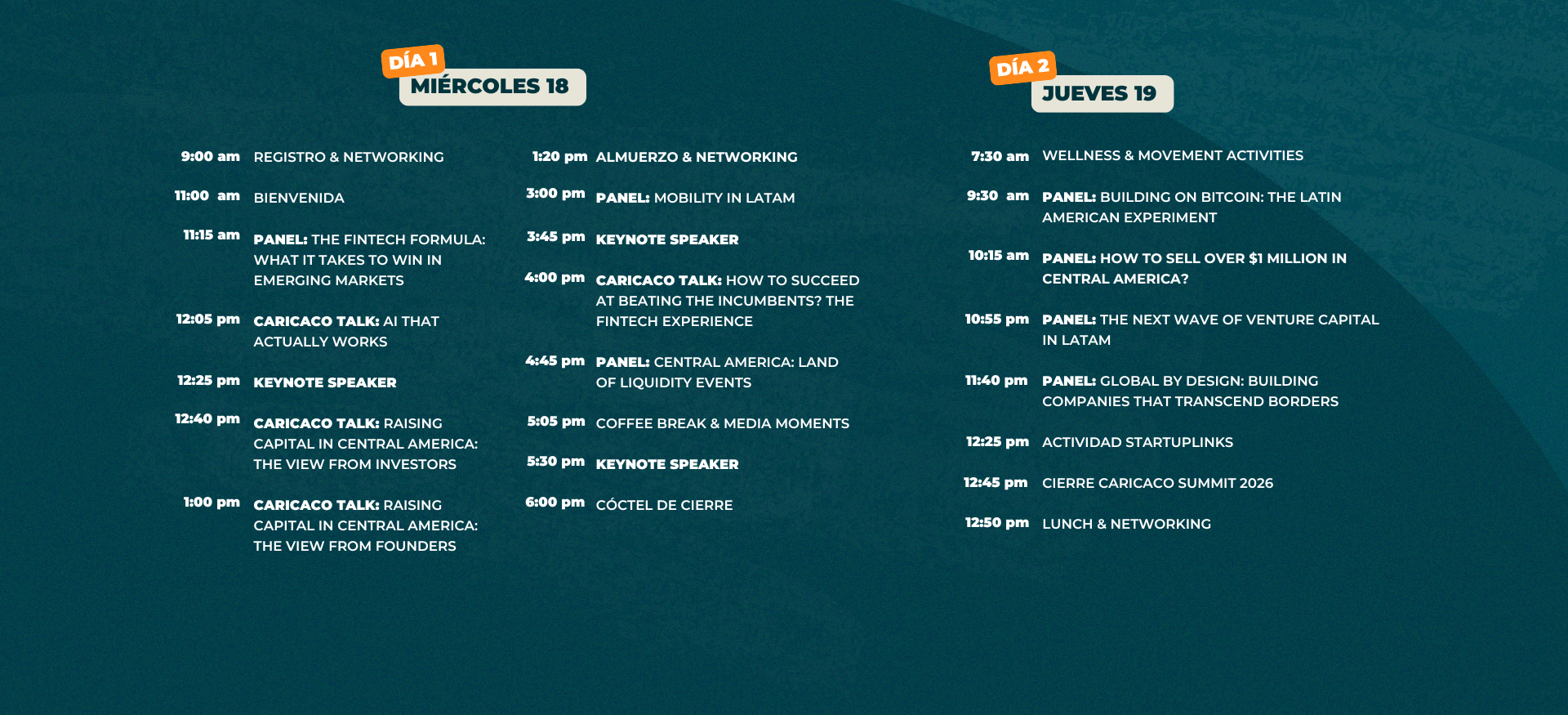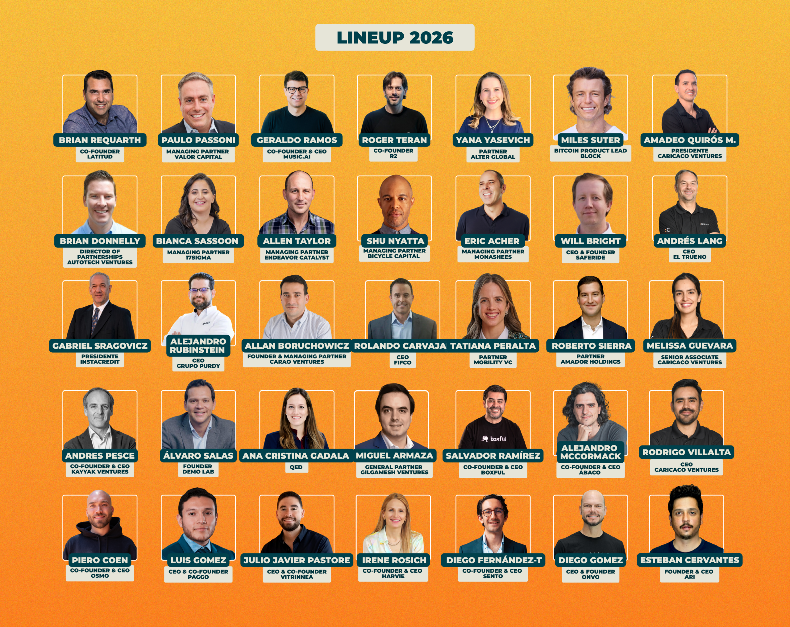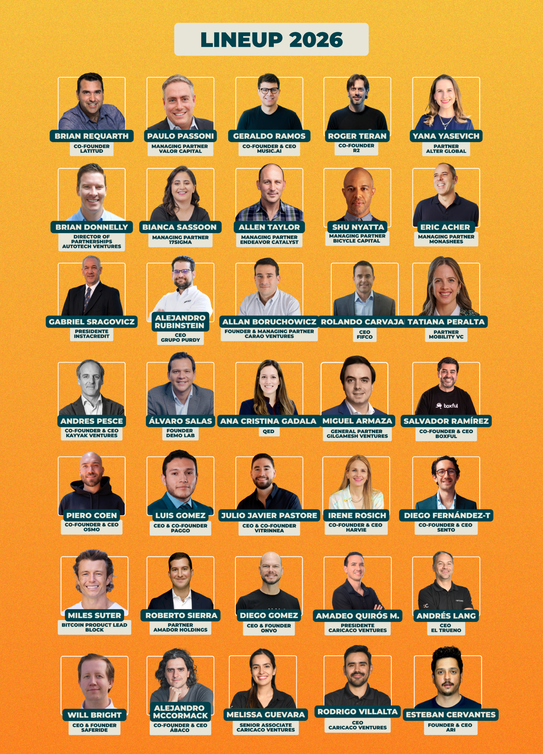 Porque es el encuentro de venture capital más grande de Centroamérica: una oportunidad única para conectar con inversionistas, founders y líderes globales del ecosistema.